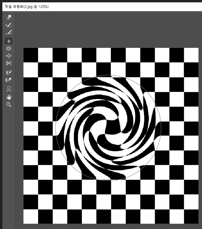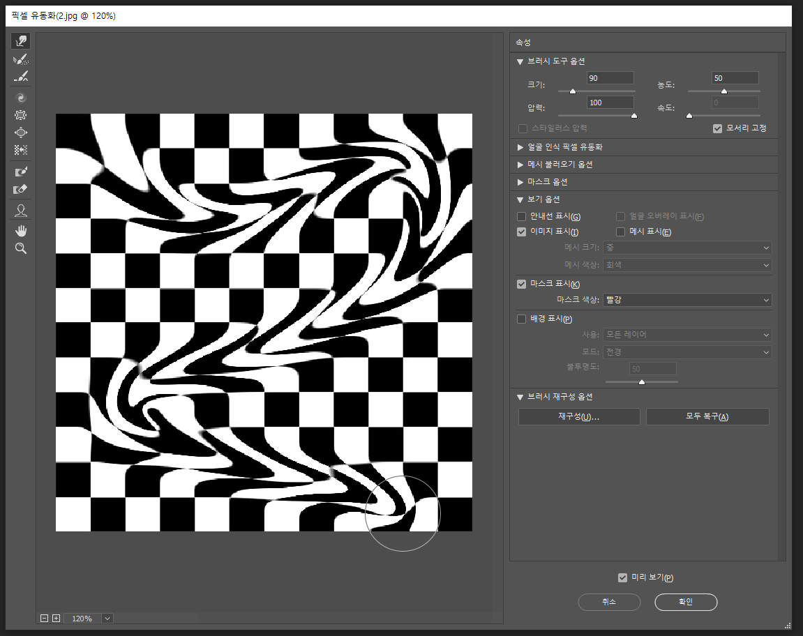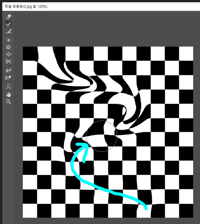 박스에서 두 번째 위치한 도구로 클릭하며 드래그하면 이미 왜곡된 부분을 다시 되돌려주는 기능을 가지고 있습니다.