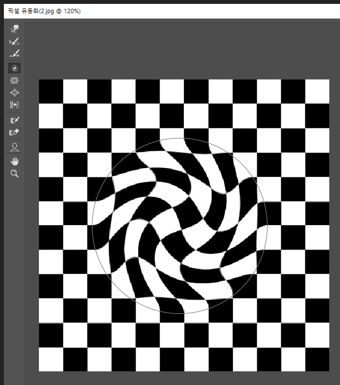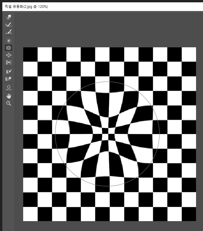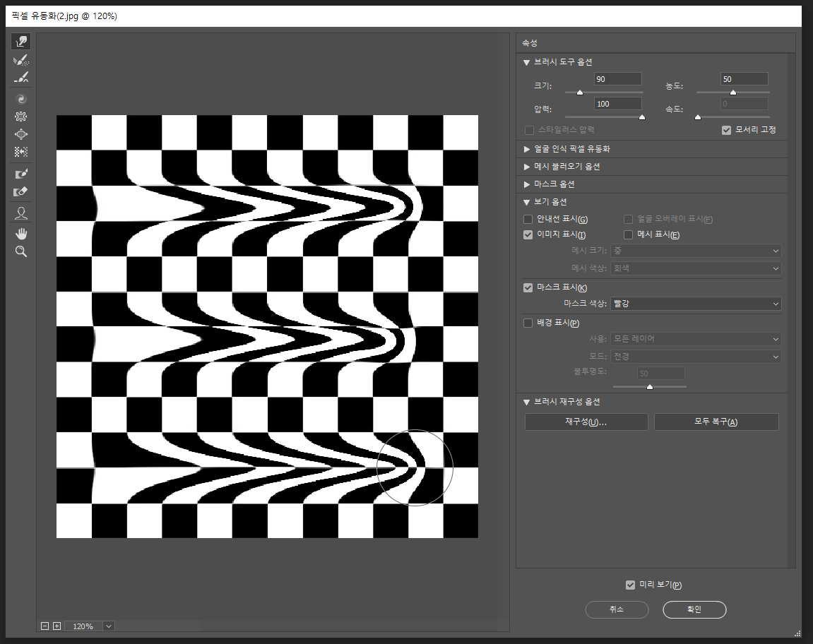 박스에서 두 번째 위치한 도구로 클릭하며 드래그하면 이미 왜곡된 부분을 다시 되돌려주는 기능을 가지고 있습니다.