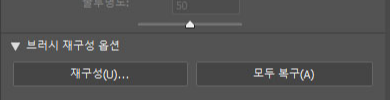 원하는 부분만 다시 되돌릴 수도 있고 전체를 되돌릴 수도 있습니다. 하지만 전체를 한 번에 되돌리고 싶을 때는 재구성 도구보다는 오른쪽 속성에서 브러시 재구성 옵션 > 모두 복구를 클릭하는 것이 빠릅니다.